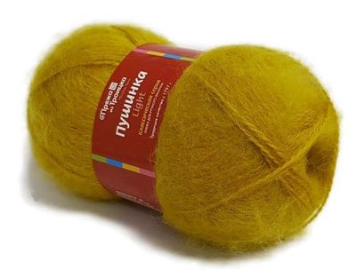 Пряжа для вязания Пушинка Троицкой фабрики 65% шерсть, 50% козий пух моточки по 50 грамм длина нити 225 метровцвет Горчица